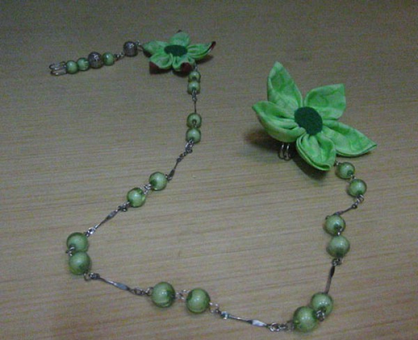 "Jurai Dobel Bunga Hijau Berantai" ini dironce dengan bahan kain, akrilik, tembaga putih, flanel dan monel..